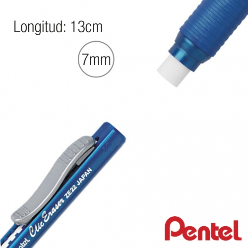 Borrador Retráctil 7.0mm Clic Eraser Grip ZE22 Pentel