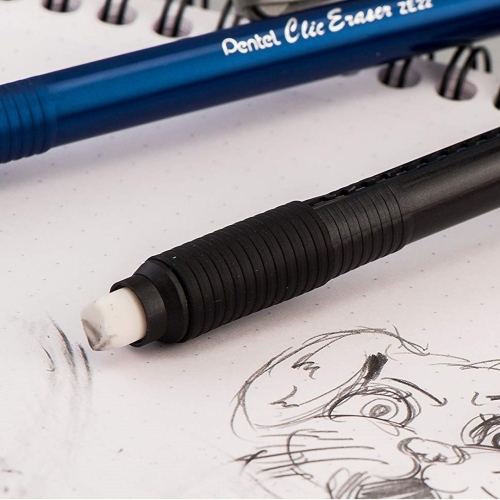 Los borradores Pentel Clic Eraser Grip eliminan el plomo de manera fácil y limpia sin rayar, manchar o rasgar la superficie de escritura.
