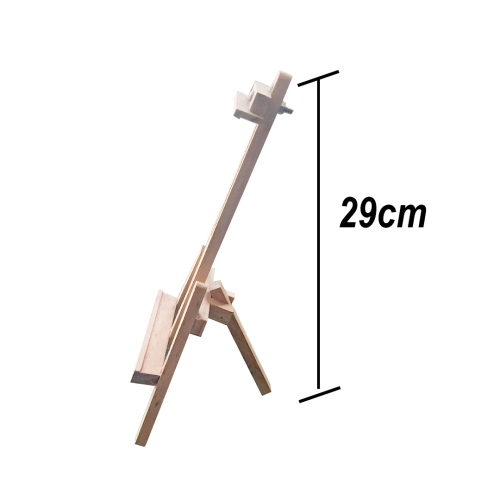 Caballete robusto y estable, elaborado en madera de pino natural, ideal para artistas, estudiantes y aficionados. Al colocarlo de pie alcanza una altura total de 29 cm, lo que permite trabajar cómodamente lienzos de hasta 21 cm de alto.